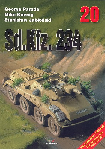 The book opens with a historical section covering the initial development of the Sd.Kfz 234 series from the earlier Sd.Kfz 231. The primary difference in the basic design being a more powerful air-cooled diesel engine. Though looking quite similar to the 231 series, the 234 series was new from the wheels up. Many consider these as the finest armored car of WWII, with capabilities in rough terrain very close to that of tracked vehicles, yet able to reach 80 kph on open ground.