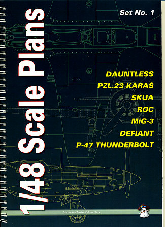 The book has twelve large fold out pages with 1/48 plans on both sides. There are two pages on the SBD Dauntless, covering all the different variants, Two on the PZL.23 'Karas', One on the Skua, Two on the Roc, One on the MiG-3, Two on the Defiant, and Two on the bubbletop P-47, including the P-47N. I'm sure that MMP had difficulty figuring out what aircraft to feature in this edition. You'll also notice that these drawings all are subjects on which MMP has books, so you have a pretty good idea of what may come next.