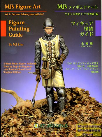 Well, that really is not true. Doing a good job on a figure is like anything else, it takes practice. We do learn by doing and so we have this book from MJ Kim, a successful Korean figure builder and painter, to show us in considerable detail, just what the steps are in building a painting a figure. I say considerable detail as each step of the process is accompanied by a ton of well done color photograhs showing the results of each of the steps required.