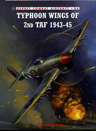 This book by Chris Thomas follows the design and development of the Typhoon. It's initial squadron introductions and modifications is also clearly detailed. But the brunt of the book is on the use of the Typhoon with the 2nd TAF. All of the various wings and squadrons are provided sections and as the war progresses, we can follow their exploits until the end of the war. It has a goodly number of pilot and crew stories, with some of the more interesting characters in these units highlighted. Not surprisingly, with the end of the war, a huge number of these war weary airframes were soon reduced to scrap with only the best still left continuing on in the RAF.
