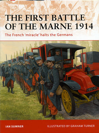 In this book on the first Marne, author Ian Sumner starts with a preamble of events leading up to the battle, a look at the commanders of both sides and the men under their command. Then there is an inspection of the plans of both sides. The 'meat' of the volume is next with the various stages of the battle, including the incredible movement of men and equipment needed to perform the assuault and defense. Finally, introspection on how the battle went, what was learned from it, and how it affected future events. There is also a look at the battlefield today. All of this is superbly illustrated with period photographs and the artwork of Graham Turner.