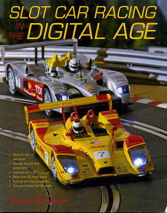 As with his magazines, there are car reviews, build and tune-up articles, how to articles for improving car and track performance, track plans and looks at the tracks of friends and readers. As the title suggests, there is a rather large section on the advent of digital racing, something that is relatively new to the hobby and one that is suffering somewhat from having at least four different ways of operating. Basically digital racing consists of track that has crossover sections which incorporate switches as in model railroading, allowing the car to move from one slot to another. There are chips and sensors installed in the cars to allow this to happen and most sets will allow at least 6 cars to race in two lanes at one time. But the systems are not compatible with each other and like the situation with HD DVDs and Video Tape, there are many who are not getting involved until the whole thing clears itself up (which may well never happen).