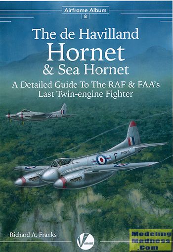 latest edition of Valiant Wing's Airframe Album series covers an aircraft that many consider the sleekest twin engine fighter ever developed, the de Havilland Hornet. It was one of those planes that was just too late to see action in WWII and was overshadowed by the frenzy to get everything turbine powered. Though it was used in only a handful of RAF squadrons, it did see action during the Malaya Insurgency, operating as a ground attack and recce plane until the mid-1950s. The type was also used by the Royal Navy as the Sea Hornet. In this case, it was used more as a night fighter, adopting the APS-4 radome in the nose of the plane and fitting an operator in the fuselage behind the wings. It was used even less than the RAF version, making only a cruise or two before being retired.