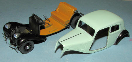 instrument panel. Headlight bezels were glued in place as was the rear seat. I