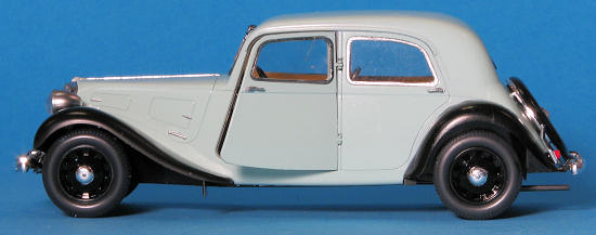 The car has five options. One is a German staff car in overall Panzer Grey. Next is a French staff car in overall olive green. An all black civilian version is next with the last version also being civilian. This one is light blue with black fenders and can be built as one that has been commandeered with German plates. The decal sheet is nicely done and includes the white fender edge markings for the German staff car.