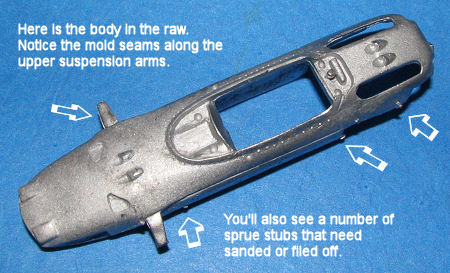To me, this is an old friend. At least the FDS kits are. Most of my 1/43 racing car collection (small though it is) consists of these kits so I know what to expect. Today's modeler expects a greater amount of detail and fewer molding glitches so they probably wouldn't be quite as acceptable. When you compare the grossness of the detail of the kit to the finesse of the real car, there is a rather large disparity. One does need to take into consideration that the whole model is only 3½ inches long, and this includes the exhaust. However, I like them for two reasons. One is that they were not expensive. Secondly they build quickly and when one needs a finished model in a week and is limited on time, these are great!