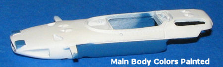 The next thing I did was to paint the inside of the body and the seat with matte black, and for this I used Floquil Engine Black. Eventually, this was a waste of time as overspray was able to pretty well make repainting needed again. I then painted the body using Floquil's reefer white after sanding it down to a smooth surface. Actually 'smooth' is a bit of a misnomer as there were some casting glitches that were just too much trouble to fix for what would be a shelf model. I also found that I had to do more filing to have the various engine components fit within each other. Much test fitting went on to be sure that I could have things join up fairly well when it came time to apply cement. With things about as well done as they could be, I took the bits to get painted.