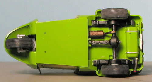 underside, I glued the driveshaft/rear end piece to the framework, again,