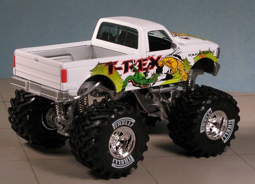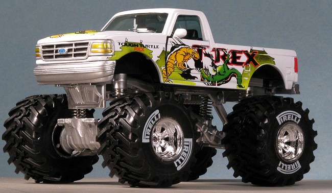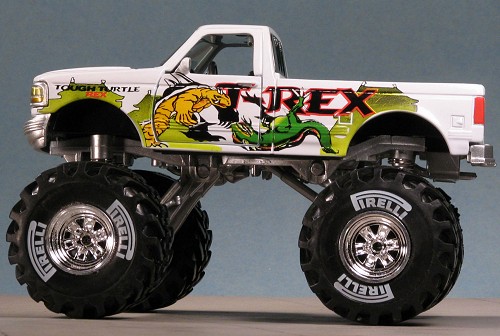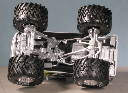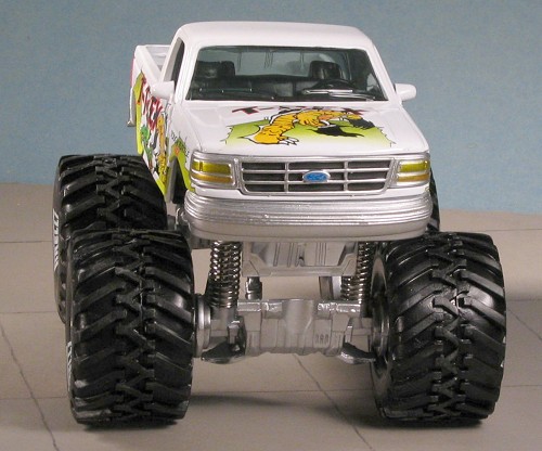 The general design of the chassis is four wheel drive as they use gigantic wheels and tires that would look more at home on a combine or large tractor than on a truck. In order to accomodate these huge tires, the body of the truck is elevated so high in the air, that often times a ladder is needed to enter the cab.