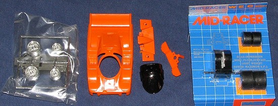 Into racing cars? Then you'll like this one. The curbside aspect of the kit means not a lot of fiddly bits and since it is basically white, you could probably get away with not painting the body, though it would mean not filling the two sink areas just in front of the wing supports. Due to the design of the body, this would probably work well as a slot car body as well. It is a kit that those who are ready for a bit more than snap kits should enjoy building.