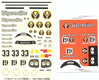 Instructions are actually for a BMW 635, but the basics are all there so it shouldn't be too difficult to follow. Mitsuwa provide both decals and stickers for the 956. A placement guide is provided on the sides of the box. The decals have yellowed a touch, but since they are standard Japanese decals, they should work just fine. The stickers are quite colorful and more appropriate if you are helping a youngster build the kit as it will have him 'racing' in minimal time. Apparently this is not an 'officially licensed' product as the word 'Porsche' has been marked over with a black magic marker!
