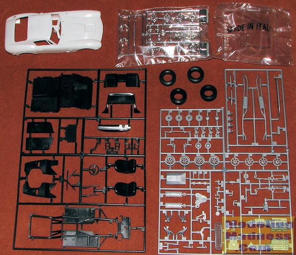 To my knowledge, this is the only mainstream injected kit of this car. While it doesn't look exactly like the real thing (a look at the bumpers in relation to the grille shows this), it is still a nice kit that does not appear to be all that complex and will put a classic Ferrari on your display shelves.