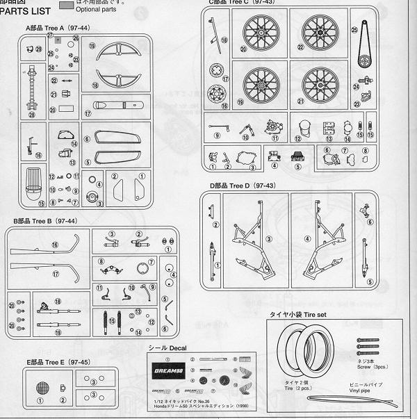 Instructions are well drawn and while much of the instruction material is in Japanese, there is enough English to make construction easy. Colors are provided in Gunze references. There is also a nice decal sheet with Honda logos, instrument faces and a few other bits. No authentic plate, which would have been nice. There is also no overall painting guide, but you can use the box art for that purpose.