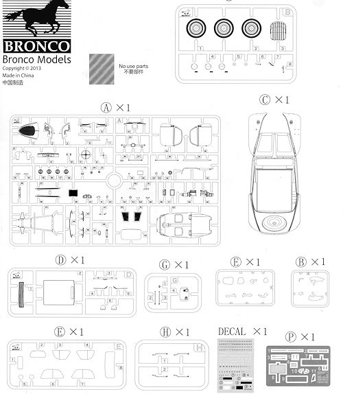 Instructions are very well done with any optional steps clearly shown. Decals are simply for license plates and you are offered both black and white backgrounds. A wide selection of letters and numbers are provided so you can do any plate you wish. The color guide shows three cars, all with black fenders. One is a dark maroon, one a beige and the other a black. If you search the net, you will find other colors. I should add that any chrome will need to be painted, but there isn't much on these cars.