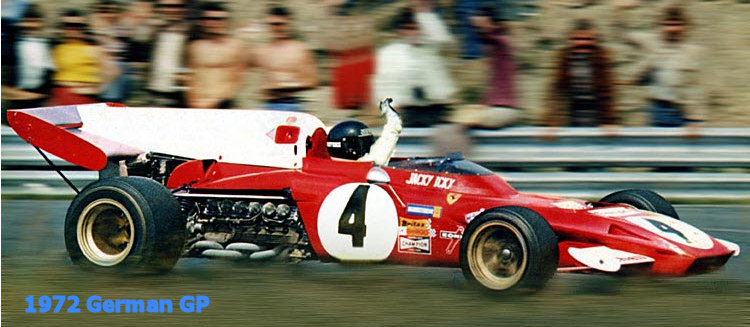 In 1972 Ferrari fielded a revised B2 with a more conventional rear suspension, but could not keep up with the progress of the competition, dropping to fourth at the end of the year. Ickx won the 1972 German Grand Prix at his favorite track, the Nürburgring, but this was to be his last GP win. The sports cars season was a success for Ferrari though, with the Ferrari 312PB based on the F1 car.