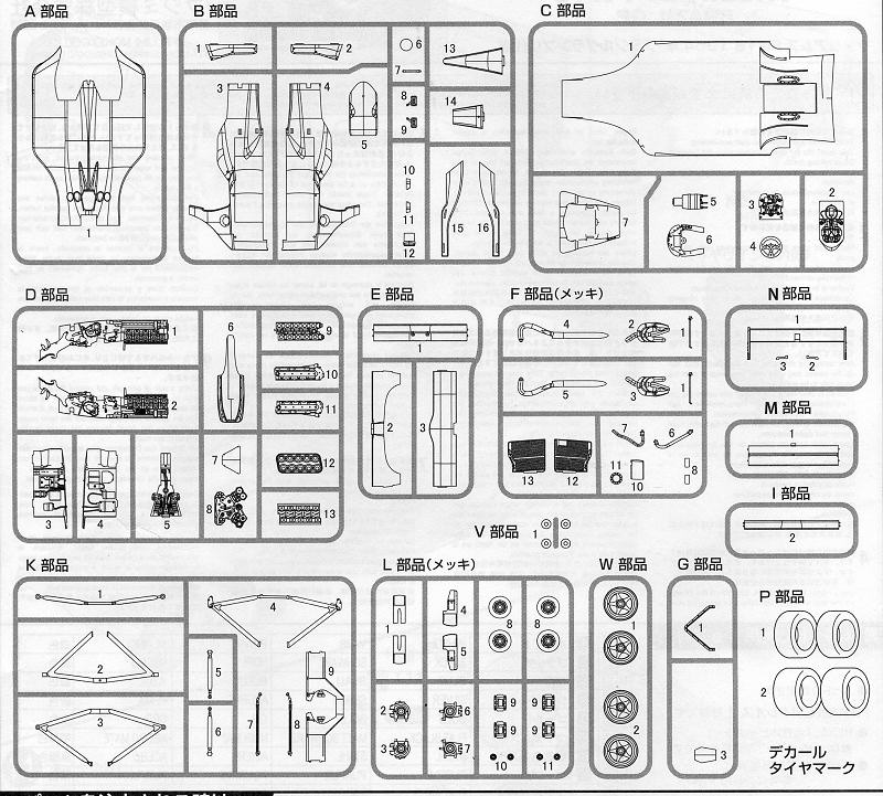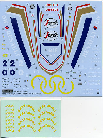 Instructions are very well drawn, and though in Japanese, one should be able to make out most of the sections needed. The kit includes a set of masks to help with painting, though these are not shown in the instructions. Two cars can be modeled. One is the #0 car of Damon Hill and the other is the #2 car for Ayrton Senna. As cars were constantly evolving from race to race, this kit is specifically for the Brazilian race. There are other boxings for other events. The main difference in this one is the roll bar shape and, of course, the front and rear wings. Decals are superbly done, but are lacking the tobacco sponsors. This is a common feature of race car kits in that they don't provide markings for tobacco or alcohol sponsors. If you compare the box art with the photo, you'll see some of these omissions. Fortunately, Tabu Design offers the missing markings. A set of masks are provided to help with some of the more difficult painting areas. As only Gunze paint references are provided, the main blue shade will have to be mixed.