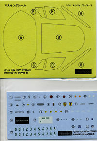 The car has extensive glass and Fujimi supplies a set of masks to help in painting. I should mention that it looks as if the modeler will need to cut the masks out as they do not appear to be preformed. Fortunately, the design of the kit is such that attaching the body to the chassis is the last step so it makes for easier painting and no worries about scratching things up in the process of mounting as the mounting posts are all well away from the edges of the body itself.