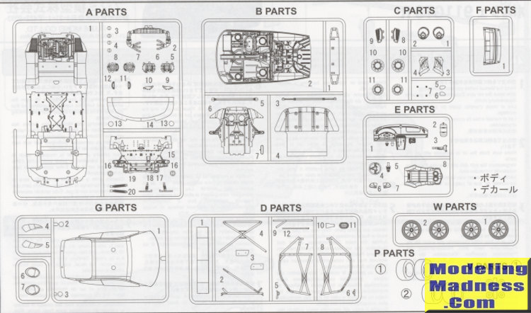 No engine is includes as Fujimi mostly does curbsides. You are provided with a nicely done suspension system and the front wheels can be steered. Interior is quite well done with a nice racing seat, the usual electronics one finds in modern racing cars and a well designed roll cage. Unlike some Fujimi kits, this one does not include window masks so you will need to break out the tape and do your own. There is a nicely done rear spoiler/wing section and the usual under-chassic plates for downforce are also included.