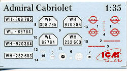 Quite a few modelers like kits like this. Since the Opel Admiral was not built specifically for the military, there are no military bits and pieces on it aside from light slit covers. Those wanting to do civilian versions, a good Google will pick up some color information. It seems the four door was mostly in black, greys and perhaps a few blue shades, with all of them tending towards the darker colors as befits a luxo-mobile. The two door soft tops had several nice two color schemes, but again, those were the shorter two door cars.
