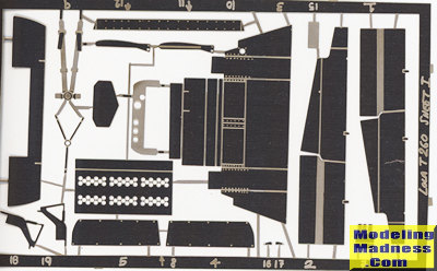 The instructions are quite nicely done with a large exploded view of the kit. A listing of both metal and etched bits is included to help decide where everything goes. Markings are for one car and I get the suspicion that this sheet is also for other variants of this car as it looks like there is more provided than what will be used. The sheet also includes all the red bits. It is unfortunate that these kits come in a standard box as it invariably means that the sheet will be too large to fit in them flat.