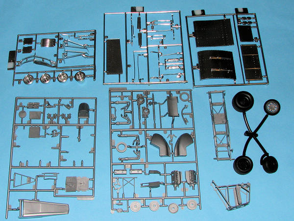 Monogram has always had nicely engineered kits and this one is no real exception. The highlight to me is that the two main chassis frames are already made in a single molding, so no need to worry about alignment. Of course, that doesn't mean that we don't have to spend time sanding away at mold seams on them, but it takes away one more problem. The kit had several large chrome sprues, and these are mostly for the wings and supports. In reality, these wings were aluminum and not chrome, so most of us will strip the chrome and paint them aluminum. The up side is that we can treat the sprue attachment nubs and mold seams while doing this.