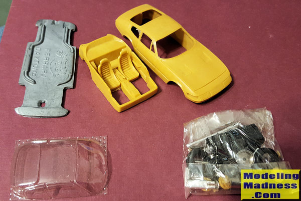 There are no instructions. As I mentioned earlier, I bought four of these kits and none come with assembly instructions. No painting guide or photo either, but thankfully, Ferraris are well represented on the Internet and a lot of images are there for guidance.