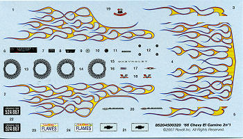 Instructions are very well done with all the parts identified and color information provided for them. The decal sheet is well printed and provides plates and logos for the stock version and a nice set of flames for the custom build.