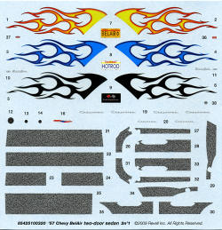 You do, of course, get the option to build either a standard car or the custom version. This means different wheels and really, that is about the only option available aside from installing the rubber tipped bumper guards as shown on the box art. A very nicely done set of instructions is provided that gives you clearly done assembly drawings with each part identified and any painting information provided. A superb decal sheet is included with this one that gives you all the interior matting and the various additional custom flames for the non-stock version. A nice part of the decals is that some of the script and instruments are decals.