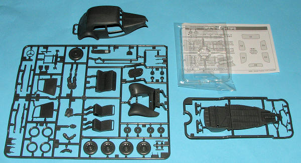 Like their 1/48 kit, this one is a curbside without a full engine. The doors are separate on this one so you can build it with the front doors open. As one expects from Tamiya, the builder will not be faced with a plethora of small parts. Tamiya's way of doing things is to incorporate a lot of small 'fiddly bits' into a single casting. It is this that probably makes Tamiya so popular. One can build a Tamiya kit of subject X much faster than one from another company that has more detail parts. But I digress.