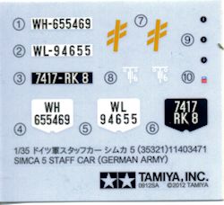 Instructions are standard Tamiya, being the long vertically folded sheet we often see with these smaller parts count kits. All paint references are Tamiya. The small decal sheet has three sets of license plates. You have two options in overall gloss German grey; one with the luftwaffe and one with the 3rd Infantry Division. The other is a civilian car in gloss black. You can find other colors if you do an internet search, some of which are quite interesting.