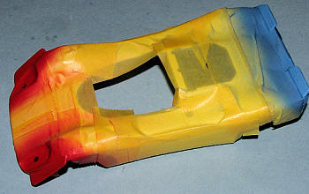 biggest problems painting cars) and sprayed on the red, using Tamiya red. The
