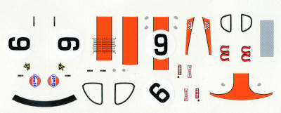 The instructions are easy enough to follow if you want to have a static car for your display. The decals are for the #9 car and include the orange stripes and all the other logos required for the car. They are well printed and though I've not used these before, should be good. In line with other kits, the tail light lenses are clear so will need painted. No red is included in the kit so you'll have to look elsewhere for this and the orange that will be needed for the wheels and the lower nose section.