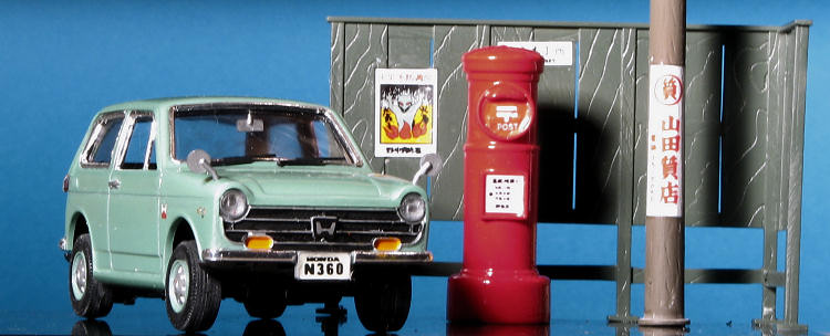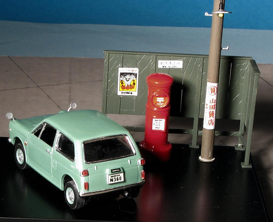 This is a rather neat diorama set from Arii. What it includes is the Honda N360 car as well as a few diorama items and a nicely done base.