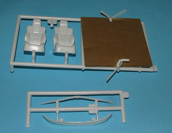 Those who build car kits nowadays expect a lot from their kits and this one seems to deliver. There is a separate engine and transmission, All of the various chassis bits are separate, including front suspension bits, drive train, rear chassis attachment points and suspension, exhaust and the whole deal. the nicely chromed wheels have an adapter that allows them to be clicked onto the axles. Interior consists of a tub where one installs the back seats, separate front seats with console and pedals. All of the windows are separate pieces that fit in from the outside so not only is there no need to mask a one-piece window assembly, but there is room on the overhead for the mirror and sun shades. Also makes it easier to paint the body. The hood is held in with plastic hinges. Final engine assembly is one with the body in place. This is followed by the addition of wipers, fuel cap, as well as front and rear body subassemblies.