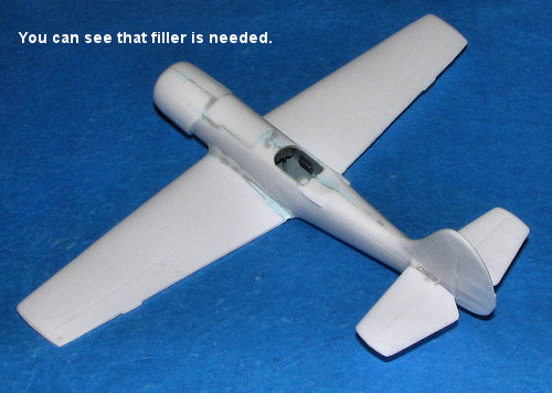 halves were glued to the single lower piece. Both the wings and fuselage were