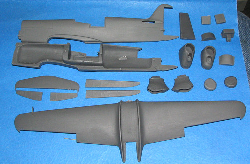 Once you open the plain but sturdy box you will find several bags of bits and two well wrapped bubble-parcels. One includes the fuselage halves and one the single piece wing. You will be suitably impressed by the very high quality level of all the parts in this kit. The resin is absolutely first rate with no glitches whatsoever on any of the parts. They are totally free of imperfections. What's more, they are also totally free of large resin pour stubs. Those have been removed leaving just minor clean up on the various bits. The insides of the fuselage halves include appropriate sidewall detail and even the forward bulkhead is molded in place, making alignment of parts that much better. Test fitting the yet-to-be-cleaned parts shows that the fit is exemplary.