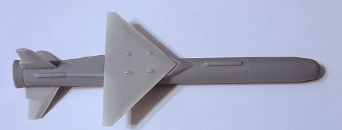 The Pegasus was produced by Cutting Edge. It is a simple kt consisting of only seven parts. Two are the mount for the underside of the L.1011 and the rest are for the missile itself. No decals are provided, but Cutting Edge did a sheet for this which was duly purchased. The Pegasus is dated 2003 while the decals are 2004 so these are early in the Pegasus historyAll the C.E. bits are dated