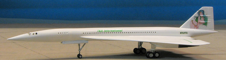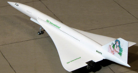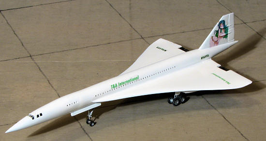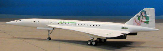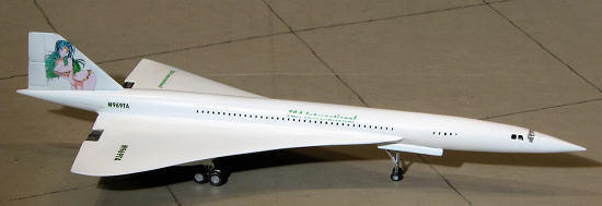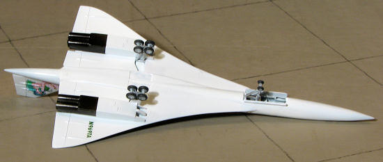 The kit has no clear parts, a one-piece wing and a fuselage that is broken into four sections with the area just in front of the wing being separate. The jet nozzles are made up of pairs of what look like pipe that one glues together. There is full landing gear and gear doors but the wheel wells are open. The kit also shows some flash. Detailing is, of course, of the raised variety. A set of badly yellowed decals for an Air France scheme never used is included. One can assume that this kit is based on the prototype and may have been developed before the plane actually flew.