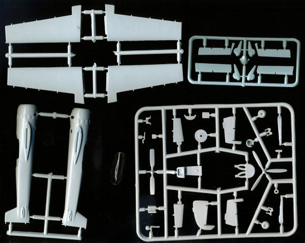 I was particularly interested in noting that all of the control surfaces were separate. This doesn't mean that they can be posed in different positions without a bit of work. The mating surfaces are flat and one would need to do a bit of work to make things look right, but all the hard work has been done for you. Thanks to the large cooling fan, no engine is visible and so not provided. The landing gear have the wheels and spats molded together to make things easy. The interior is quite basic, but provides all you need. I liked that the tail planes and wings have large slots in which to fit the tabs.