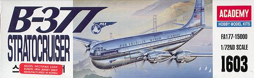First flight of the model 377 occurred in July 1947 and less than two years Pan American was flying the plane on its Honolulu to San Francisco run. Considered very plush for its day, this double decker was fully pressurized and was able to accommodate 50-60 passengers in a level of luxury not available in its Douglas and Lockheed counterparts. A real passenger friendly feature of the 377 was the lounge and bar located in the lower deck! Due to engine overheating problems and propeller glitches that Boeing was never able to completely eliminate, the B.377 wasn't the commercial success of the DC-6/7 and Constellation and less than 100 were built.