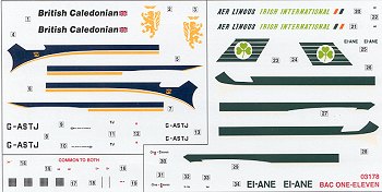 Instructions are the usual Euro-style with instruction drawings only and the usual pathetic color callouts by Humbrol numbers only. Some of them will need to be mixed, if I read my instructions properly. Markings are provided for British Caledonian and Aer Lingus . Cheat lines and the big logos are provided. The decals are semi-matte and look to be well printed. I don't think there will be any real problems using them. There have been aftermarket decals made for this kit, but there are not that many around.