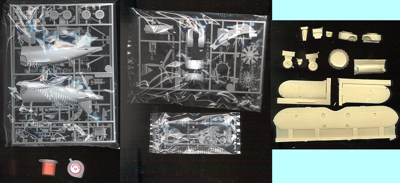 You really get a lot of resin, and if you have priced Black box sets, you definitely get your money's worth. To whit: a new upper and lower wing, a new engine cowling, upper forward fuselage deck, lower engine plate and air scoop, forward wheel wells, wheels and a new tail cone. That is a lot of resin. These parts come in a zip lock bag.