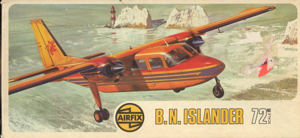 Allow me to quote from the Airfix instruction sheet as I have darn little info on this aircraft. "Produced to meet the specific needs of commuter airlines and bush operators, the ten seat BN.2 Islander has achieved sales of over 300 aircraft by mid 1971. First flying on June 12, 1965 the Islander was initially financed completely by the company as a private venture, but following overtures to the government, a loan was granted in November to get full production underway.