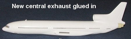Finally the engines arrive. The main engines are two part with the intake separate and include the pylons so they are a simple swap. The rear engine exhaust section fits right in place where the old one went. Just a bit of filler used to smooth things in and then it was time to do some painting. This is where I generally screw up airliners.