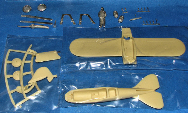 Cast metal is used for the gear struts, exhaust, radiators, control stick, tail skid, another set of wheels in case you'd rather use metal ones, prop, shaft and a few smaller bits. A section of acetate is provided for the windscreen and a template is on the instructions. A small sheet has both the racing numbers (not shown).