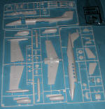 The wings are a one-piece lower wing with the upper wings also containing the upper half of the wing tip tank. The lower tank half contains the fin. Engines are upper and lower sections with an intake compressor fan and exhaust pope. As mentioned, there is a poseable cabin door. Landing gear are well molded and sturdy. In all, there are not a huge number of parts for what is really a rather large model. There is no indication of the need for nose weight, but I'd add some just to be sure.