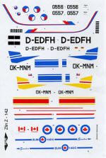 The instructions consist of a superbly drawn exploded view with three detail views for the instrument panel, canopy and the lower nose arrangement. Also included is an additional sheet showing various details in photos and a cutaway view of the real plane. Very much overkill in my opinion as no way will most modelers be able to use the detail information provided. Yet it is there if one wants it. Markings are provided for four aircraft. Three are shown on the color box art. First is a provisional Czech AF from November 1993. Next a civilian scheme from an aero club around 1982. The third on the box is a fake Snowbirds scheme. The fourth is a German aircraft in white with blue markings. The huge decal sheet is by Propagteam so you know it is well done and super thin.