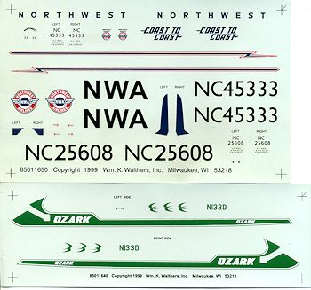 Ozark Airlines markings are identical to those in a 1985 IPMS Nationals sheet