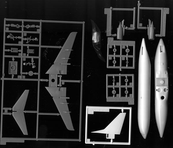 Tail planes are one piece as are the wings on this version because they are so short. Thanks to the option for wheels up, one can build this in flight, something that many airliner fans can appreciate. Probably the biggest difference from 'standard' airliner kits is that this one has the fuselage split horizontally. Not sure how much that will change things, but it does move the seam to where it will be under the window and cheat-line decals.