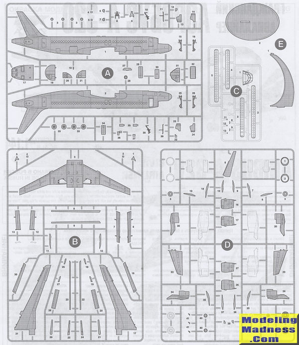 For the nuts and bolts, you get three large grey sprues, a clear sprue with windows and a display stand. Zvezda is one of the few kit makers that includes this neat option and many of us who like to build airliners are glad it is included so we can do a wheels up build.